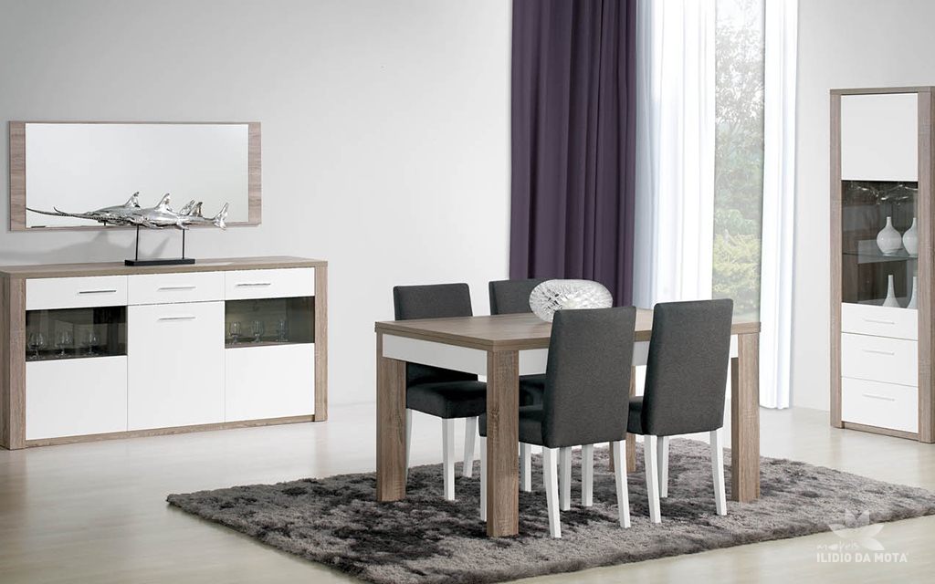 Ambiente de sala de jantar Paris, versão cinza e branco, composto por: